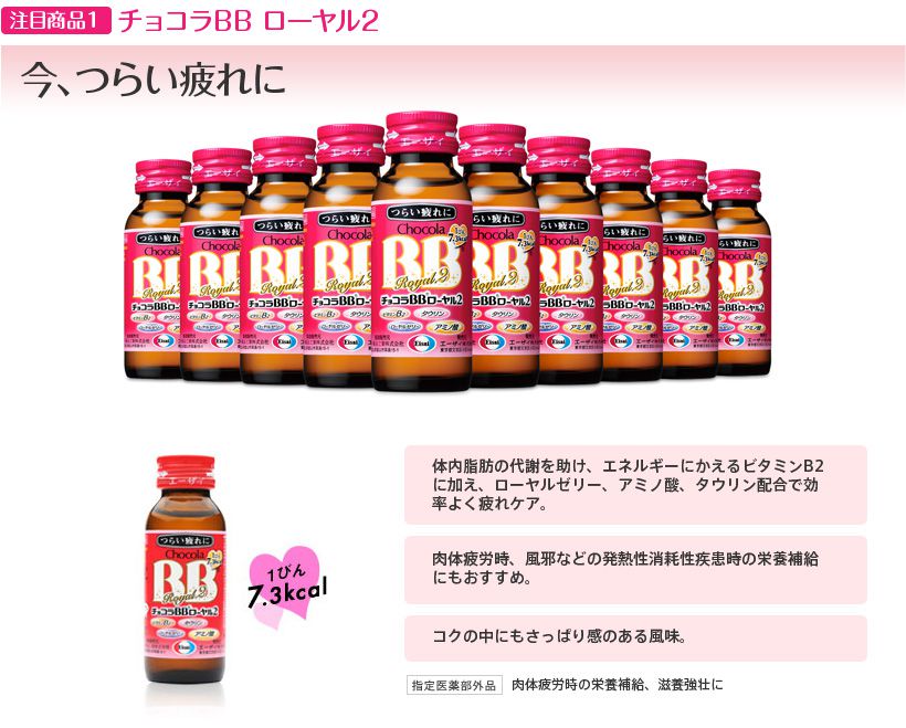 ) 商品詳細 メーカー名 エーザイ株式会社(Eisai) 品名 栄養ドリンク(指定医薬部外品) 50ml×10本セット 成分・材質 有効成分(1瓶50ml中) ビタミンB2リン酸エステル 15mg ビタミンB6 10mg ビタミンB1硝酸塩 10mg ローヤルゼリーチンキ 300mg (ローヤルゼリーとして300mg) タウリン 1000mg グリシン 50mg L-アルギニン塩酸塩 100mg L-リジン塩酸塩 100mg トチュウ葉流エキス 0.06ml(トチュウ葉として60mg) ニコチン酸アミド 40mg カフェイン水和物 50mg 添加物として、安息香酸Na、エチルバニリン、果糖、クエン酸、クエン酸Na、グリセリン、バニリン、パラベン、プロピレングリコール、香料、アセスルファムK、DL-アラニン、エリスリトール、スクラロース、没食子酸プロピル、DL-リンゴ酸を含有 注意 納期:最短 4 〜 最長 9 営業日 賞味期間:2015/9月 取扱上の注意: 1.直射日光や長期間蛍光灯の当たる場所、高温をさけて保存してください。