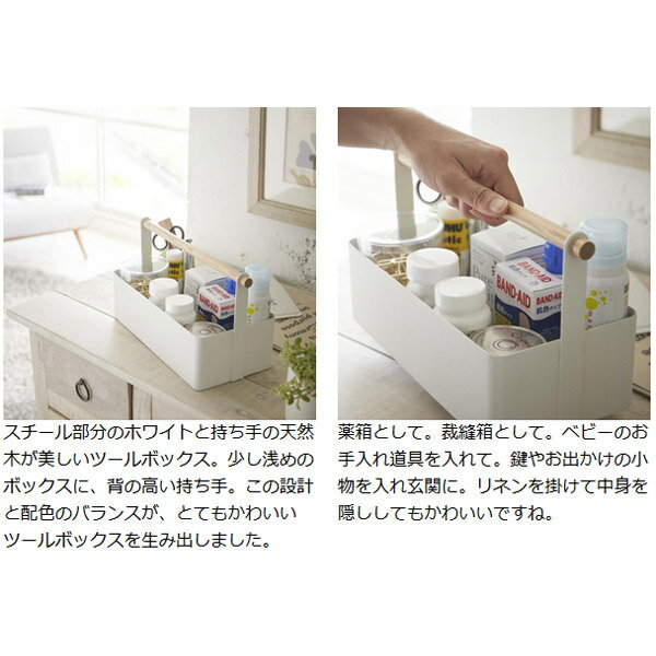 製造上必要不可欠な穴になりますので、ご了承下さい商品区分小物収納ケースカテゴリから探すスチール部分のホワイトと持ち手の天然木が美しいツールボックス。