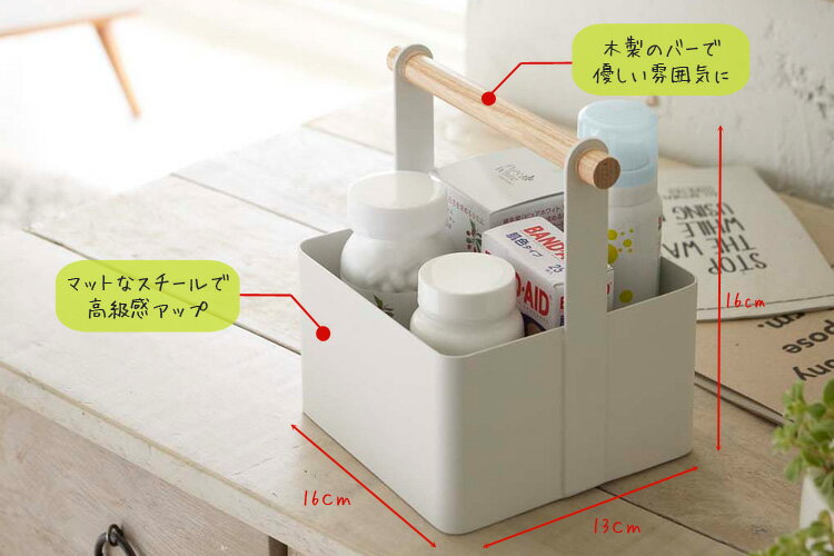 DETAIL&SPEC/商品の詳細とスペック ホワイトと木の組み合わせがナチュラルな生活雑貨シリーズ「tosca」の、「ツールボックス」です。